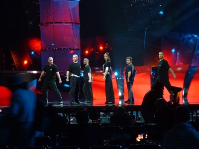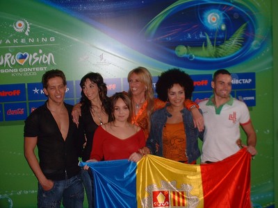 songs play on a giant screen and orange Eurovision 2005 T-Shirts are